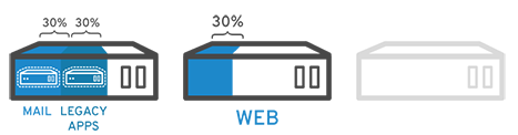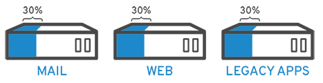 Each server is being used at about 30% capacity—just a fraction of their running potential. But since the legacy apps remain important to your internal operations, you have to keep them and the third server that hosts them, right?