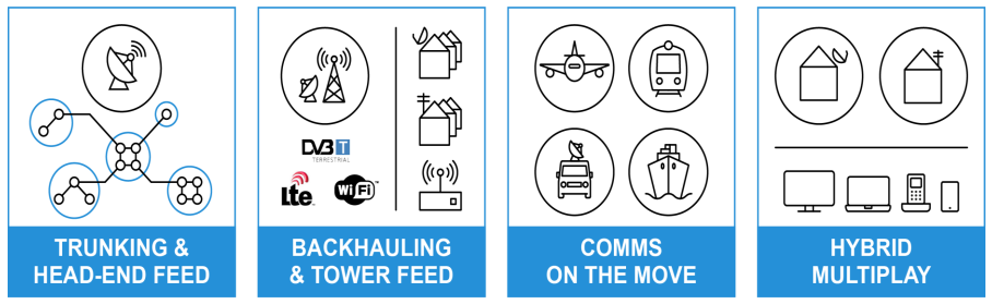 • Hybrid Multiplay: which is about high-speed connectivity including backhaul to individual homes and offices, with the ability to multicast the same content across a large coverage area. It also allows for efficient BB connectivity for aggregated IoT data.