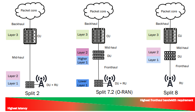 Operators must make trade-offs between latency requirements and fronthaul bandwidth availability, especially for the splits 2,8, and 7-2.