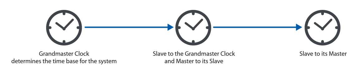 - Slave—A clock that receives time from other clocks in the network.
