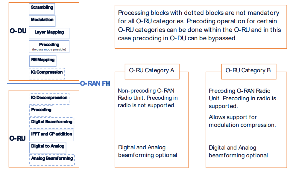 • O-RUs within which the precoding is not done (therefore of lower complexity) are called “Category A” O-RUs.