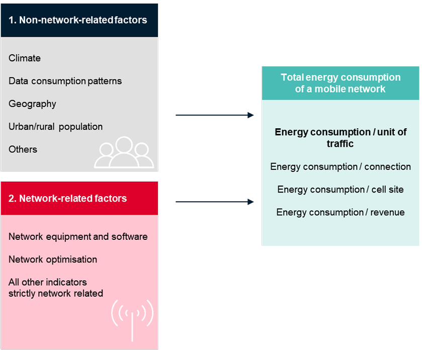 There’re many factors that impact the energy consumption in the mobile network operators, some of them related to climate, population density, and data consumption levels, while others are related to the network operators themselves or under its control. So there’re two groups as per GSMA benchmarking: