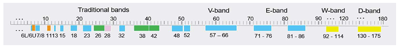 - Future bands, The industry is currently discussing the usage of W-band and D-band for microwave.