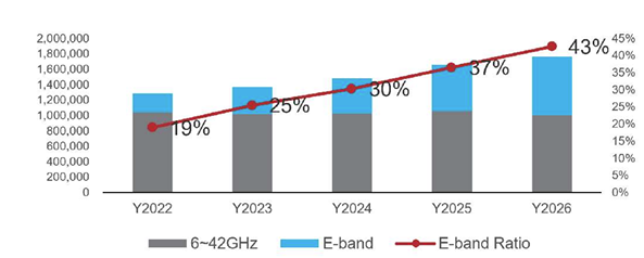 Traditional Band Vs. E-Band Market Forecast, Huawei - E-Band’s high bandwidth and low spectrum cost make it the leading choice for 5G Backhaul in urban and suburban. It can enables 10Gpbs bachaul per carrier.