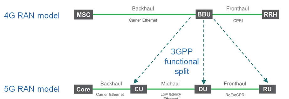 Unlike the 4G, 5G introduced the RAN disaggregation where the BBU can be disaggregated into Distributed Unit (DU) and Centralized Unit (CU) and can be deployed far apart from the Radio Unit (RU) but with some constraints related to the fronthaul throughput and latency requirement.