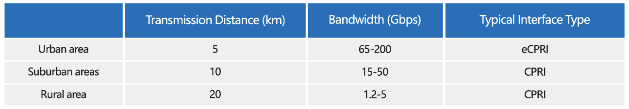 - Rural areas, characterized by long distances, traditional microwave frequency bands, CPRI bandwidth compression, and interface conversion, are also necessary.