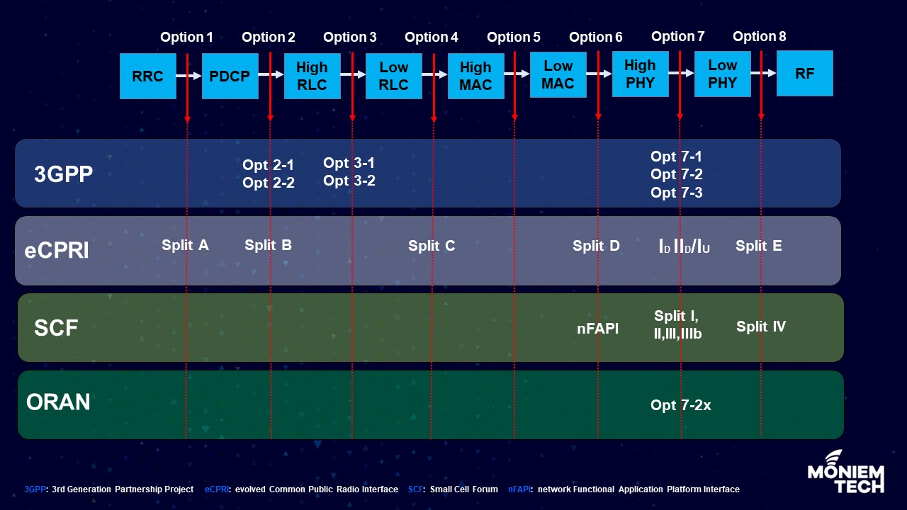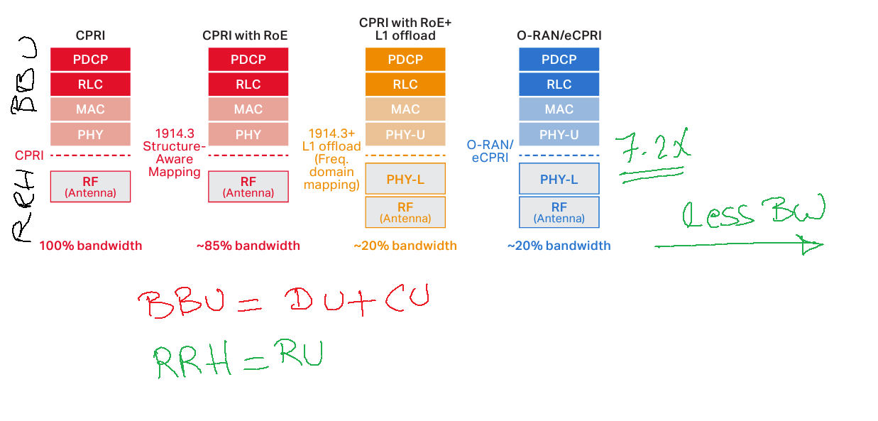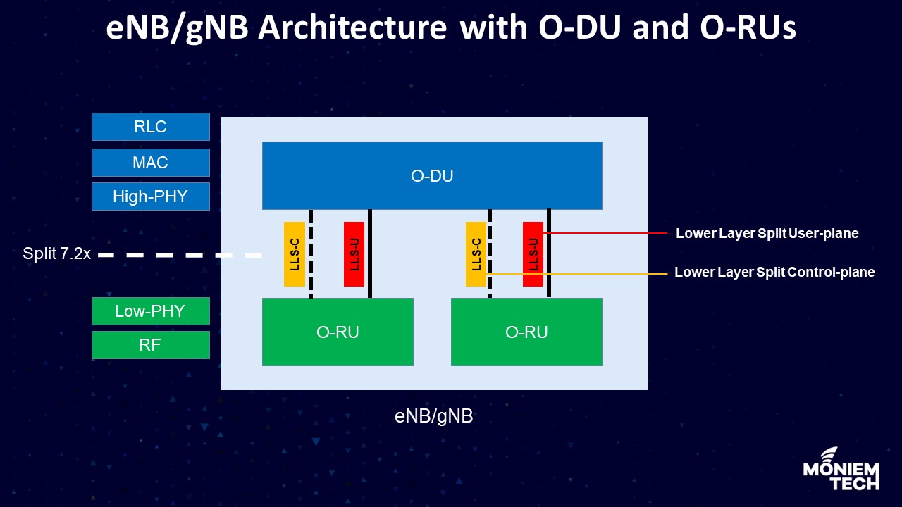 The architecture of eNB or gNB with O-DU and O-RUs has some important definitions here: O-DU: O-RAN Distributed Unit: a logical node hosting RLC/MAC/High-PHY layers based on a lower layer […]