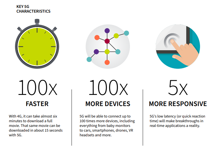 - 5G as technology will evolve over time and leverage a variety of spectrum ranges, plus robust security, to support new use cases.