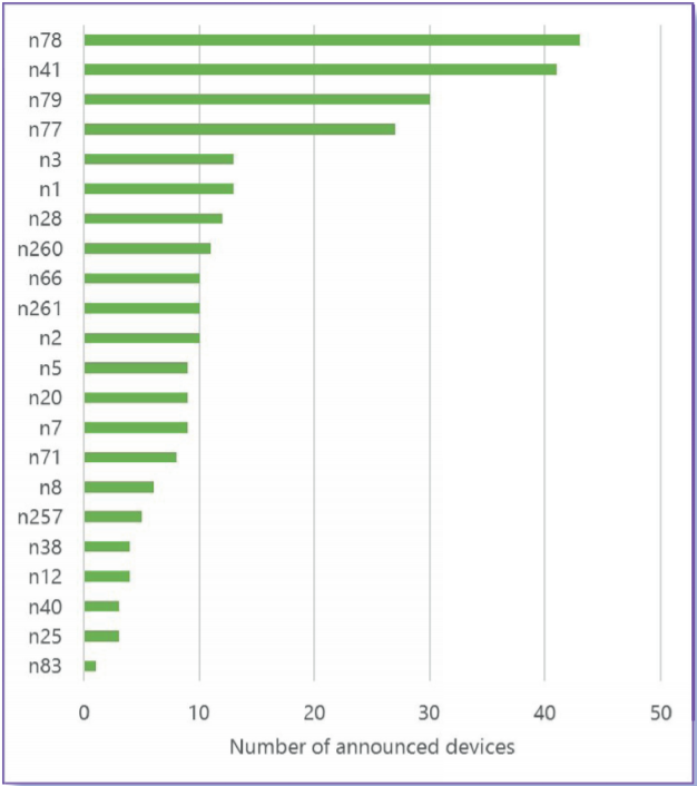 As per GSA, Last release December 2019, the Availability of information about spectrum support is improving as a greater number become commercially available. Nearly 60% of all announced 5G devices are identified as supporting sub-6 GHz spectrum bands. Nearly one-third are understood to support the mmWave spectrum.