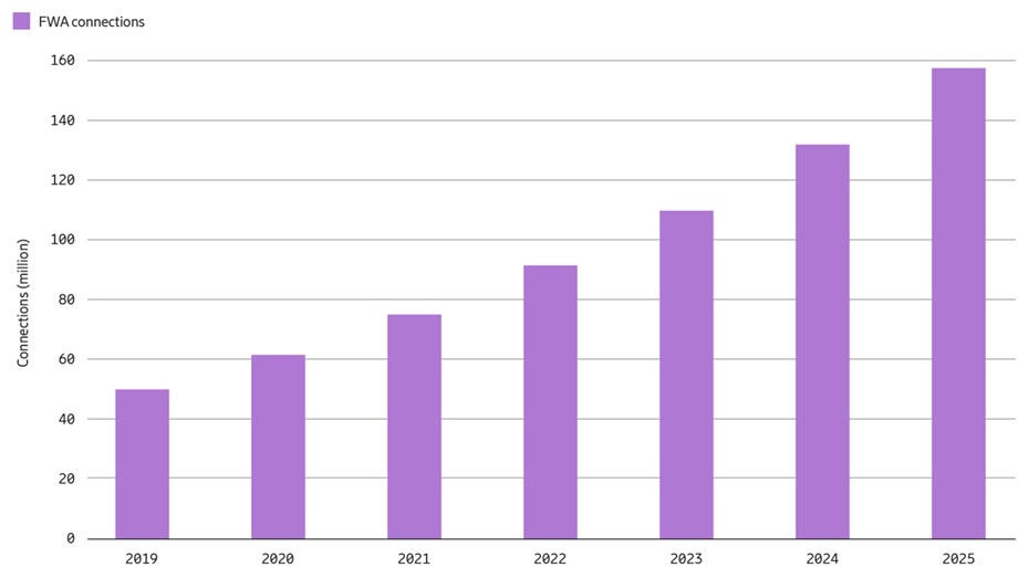 Fixed wireless access (FWA) connections are forecast to grow threefold and reach close to 160 million by the end of 2025, accounting for 25 percent of total mobile network data traffic globally, Ericsson predicts.